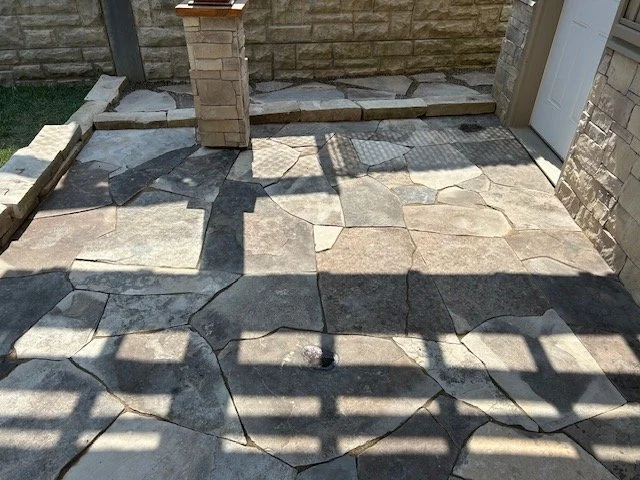 We love working with natural stone, whether wet-laying limestone, sandstone, or bluestone walkways, entryways, etc. We also love building armour stone walls and flagstone patios.
